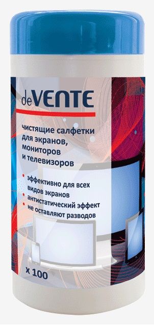 Салфетки чистящие для экрана «deVENTE» 4170401 100шт. влажные в тубе