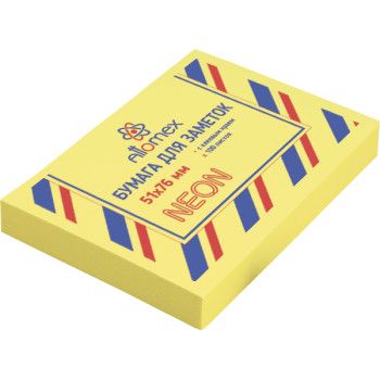 Клейкая бумага для заметок "Attomex" 51x76 мм, 100 листов, офсет 75 г/м², неоновая желтая