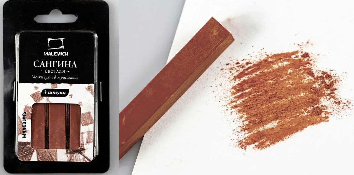 Сангина светлая Малевичъ, набор квадратных мелков 3шт 810007