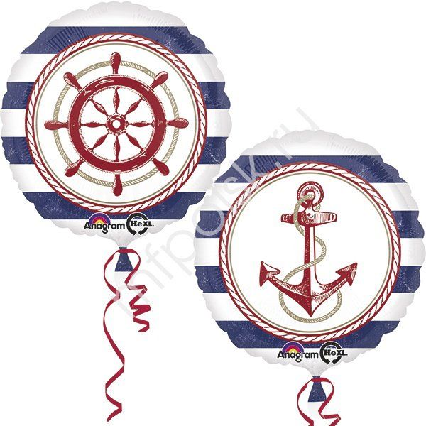 Идеальный декор для морской вечеринки - воздушные шары с якорем и штурвалом (рисунок двухсторонний).