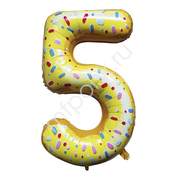Шар фольгированный 102см Пончик «Цифра 5»
