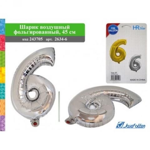 Шар фольгированный 45см «Цифра 6» серебро 2634