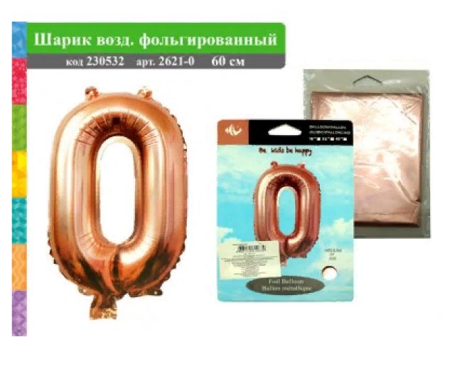 Шар фольгированный 66см «Цифра 0» бронза 2621-0