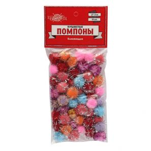 ПУШИСТЫЕ ПОМПОНЫ БЛЕСТЯЩИЕ (ТХ-9050) d=1.5см.набор 50шт