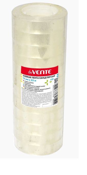 Клейкая лента канцелярская 'deVENTE' прозрачная, 35 мкм, 12 ммx33 м, пластиковая втулка.