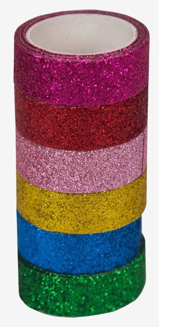 Клейкая лента декоративная 'deVENTE. Glitter.Bright' с блестками, полипропиленовая основа, 15 ммx2 м, картонная втулка, в пакете с блистерным подвесом, яркие цвета ассорти, микс 6 цветов