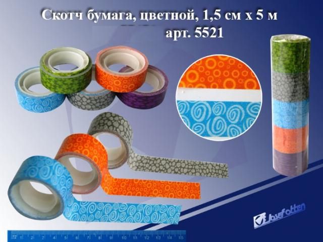Скотч 15мм х 5м бумага 5521 асс цена за1шт
