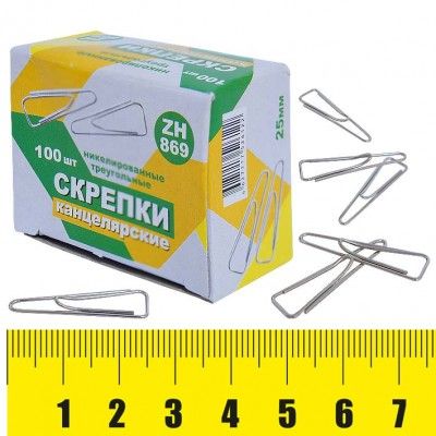 Скрепки 25мм никел. 100шт. ZH869 «Премиум» треуг.с отогн.нос., J.Otten