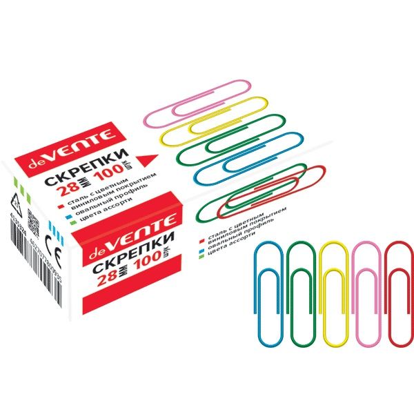 Скрепки металлические 'deVENTE' овальные цветные 28 мм, 100 шт в картонной коробке