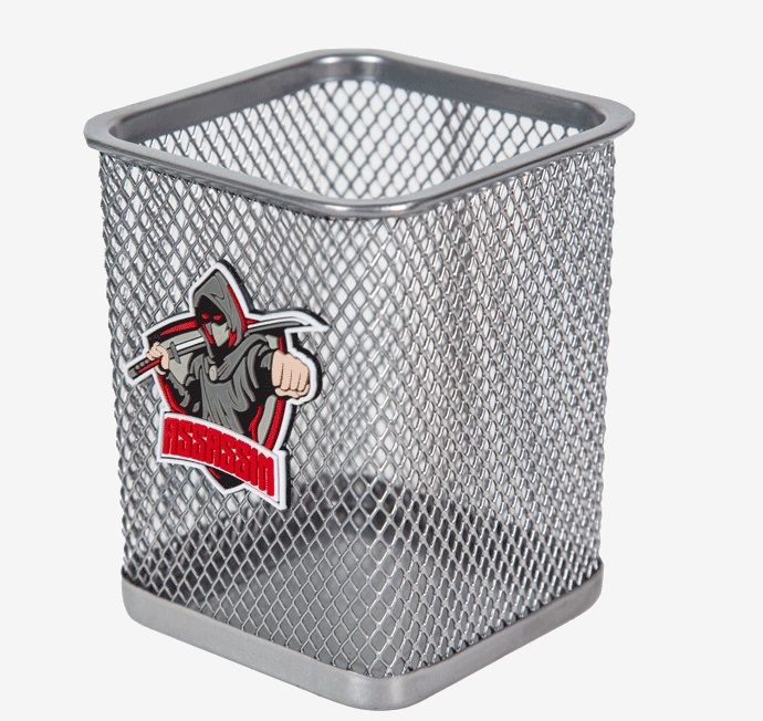 Подставка для пишущих принадлежностей "deVENTE. SuperHero. Assassin" 8x8x9,8 см, с декоративным элементом, квадратная, сетчатая металлическая, серебристо-серая