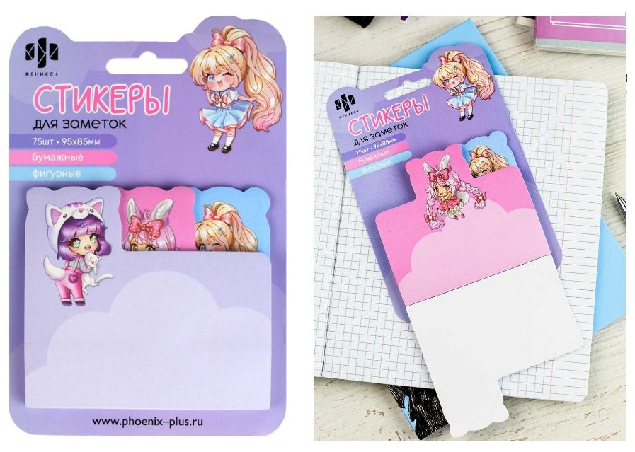 Стикеры для заметок бумажные, 95x85 мм, 75 шт., арт. 66581 / 25 ДЕВОЧКИ (материал: бумага 80 г/м², кол-во цветов: 3, кол-во каждого цвета: 25, форма: фигурная, декор: полноцветная печать; наличие диспенсера: нет, индивидуальная упаковка: подложка с европодвесом из мелованного картона + ПЭТ-пакет)