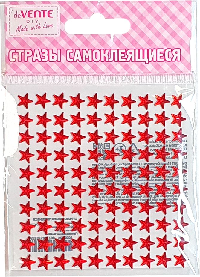Стразы самоклеящиеся 'deVENTE. Star' акриловые, размер 8 мм, карточка 90x90 мм, красные, 100 шт в пластиковом пакете с блистерным подвесом