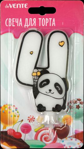 Свеча-цифра для торта 'deVENTE. Панда' 4, размер свечки 9,1x6,6x1 см, с рисунком, белая, в картонном блистере.