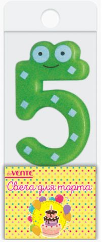 Свеча-цифра для торта 'deVENTE. Смешная' 5, размер свечки 6,1x3,9x0,85 см, с золотистым рисунком, в пластиковой коробке с подвесом