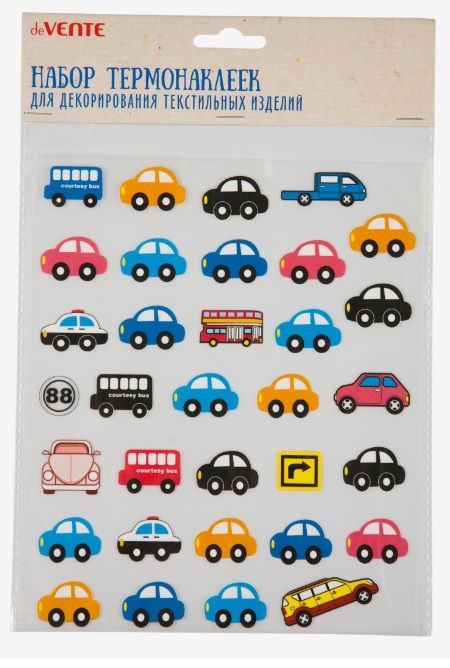 Набор термонаклеек для декорирования текстильных изделий 'deVENTE. Машинки' 17,2х21 см, в пластиковом пакете с блистерным подвесом