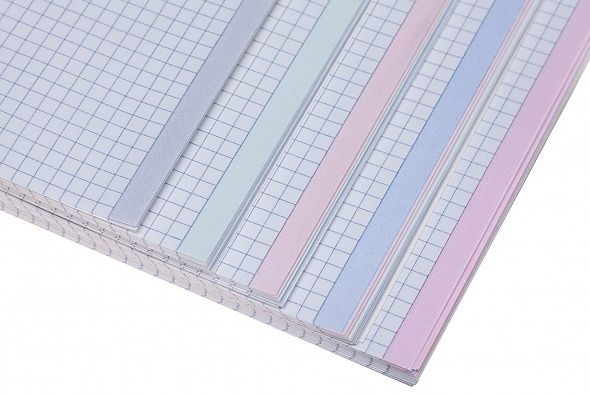 Тетрадь А4 формата 120 листов. Обложка: твердая, ламинированная. Внутренний блок: офсет 60 гр., клетка, многоцветный срез, многоуровневая перфорация. Скрепление: гребень. Тетрадь предназначена для записей, используется студентами и в офисе. Внутренний блок имеет универсальную перфорацию для подшивки листов в папку, перфорация на отрыв имеет засечку для более удобного использования. Скрепление 'гребень' дает возможность раскрывать тетрадь на 360 градусов, а твердая обложка позволяет делать записи на весу. Многоцветный срез помогает разделять записи по тематическим рубрикам.