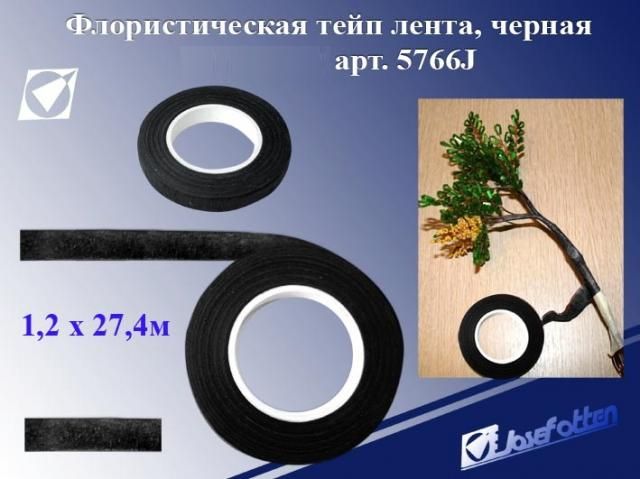 Тейп лента 12мм*27,4м флорист. 5766-10J черная