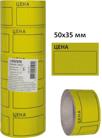 Этикетка Цена 'deVENTE' 50x35 мм, желтая, 200 шт в рулоне