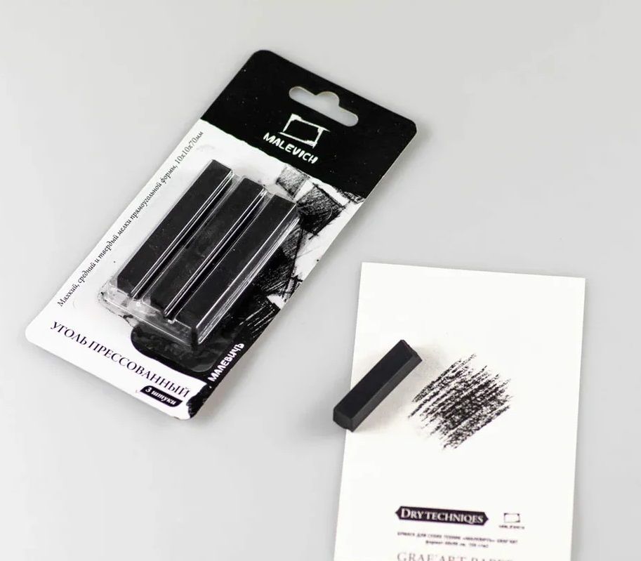 Уголь прессованный Малевичъ, набор квадратных мелков 3шт 810010