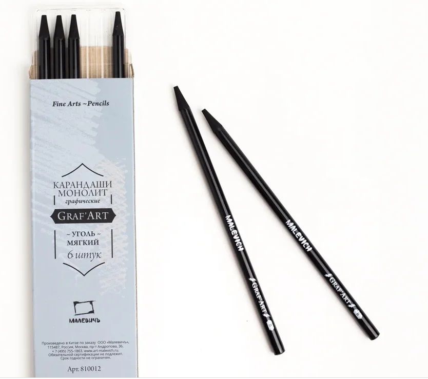Угольные карандаши монолиты отлично подходят для рисования на бумаге и монохромной технике, а также в сочетании с графитом, пастелью, цветными карандашами. Корпус карандаша покрыт прозрачной пленкой.