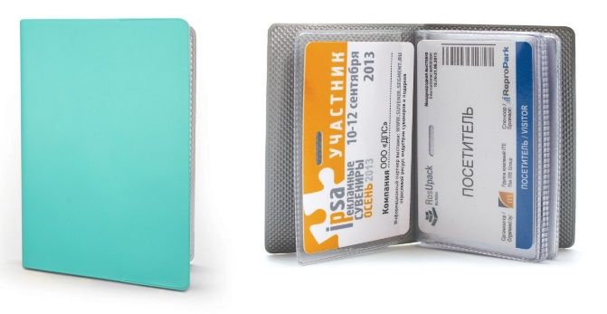 Визитница для 20 карт с обложкой из мягкого пластика 350 мкм. Без картона, 10 файлов 120 мкм. Размер 67 х 100 мм.