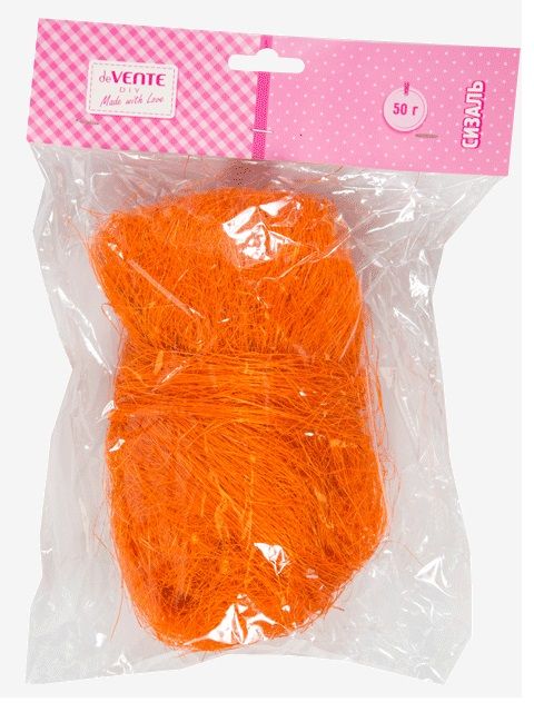 Волокно сизалевое натуральное 'deVENTE' 50 г, оранжевое, в пластиковом пакете с блистерным подвесом