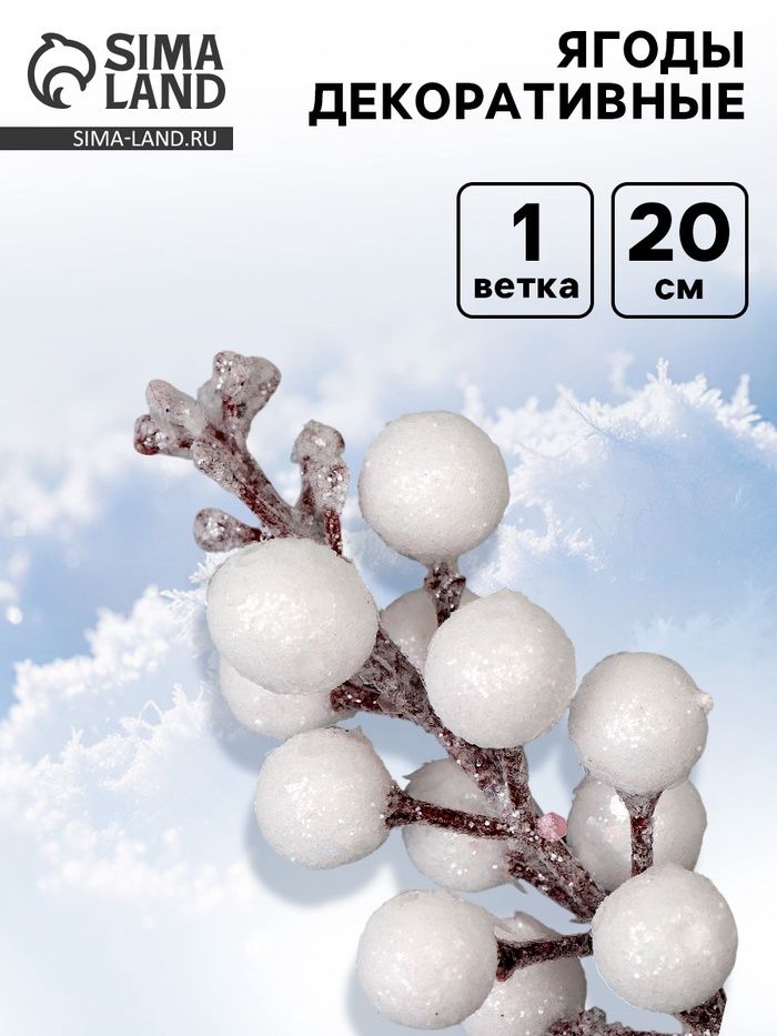 Ягоды для декора, белого цвета, 4.5×4.5×20 см