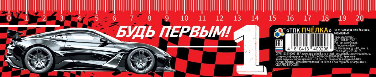 Закладка-линейка 20см БУДЬ ПЕРВЫМ ЗЛ-20