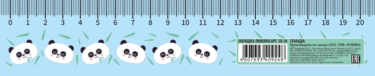 Закладка-линейка 20см ПАНДА ЗЛ-20
