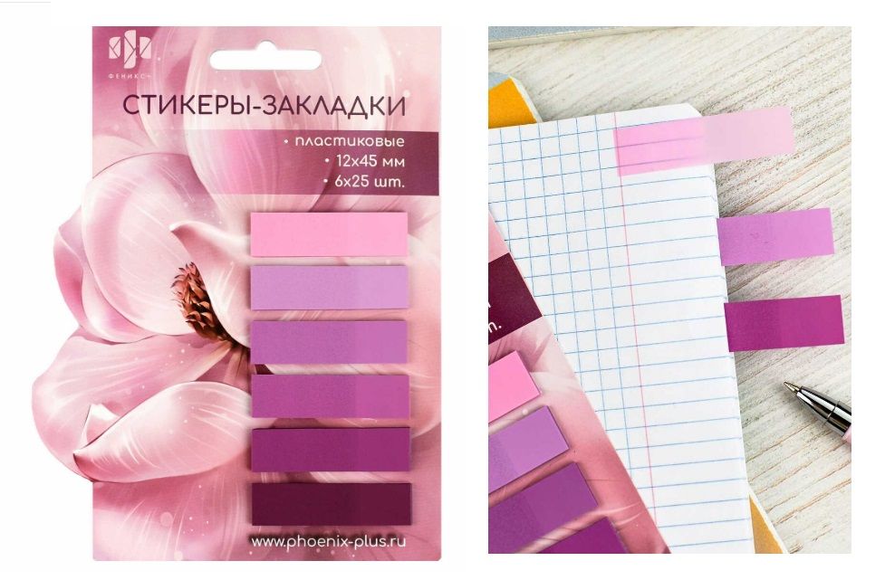 Стикеры-закладки пластиковые, 12x45 мм, 150 шт., арт. 66594 / 48 ЦВЕТОК (материал: пластик цвет: розовый; кол-во цветов: 6, кол-во каждого цвета: 25, форма: прямоугольная, декор: печать в 1 краску; наличие диспенсера: нет, индивидуальная упаковка: подложка с европодвесом из мелованного картона + ПЭТ-пакет)