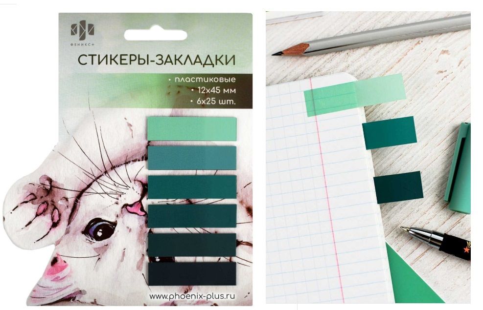 Стикеры-закладки пластиковые, 12x45 мм, 150 шт., арт. 66595 / 48 КОТ (материал: пластик цвет: бирюзовый; кол-во цветов: 6, кол-во каждого цвета: 25, форма: прямоугольная, декор: печать в 1 краску; наличие диспенсера: нет, индивидуальная упаковка: подложка с европодвесом из мелованного картона + ПЭТ-пакет)