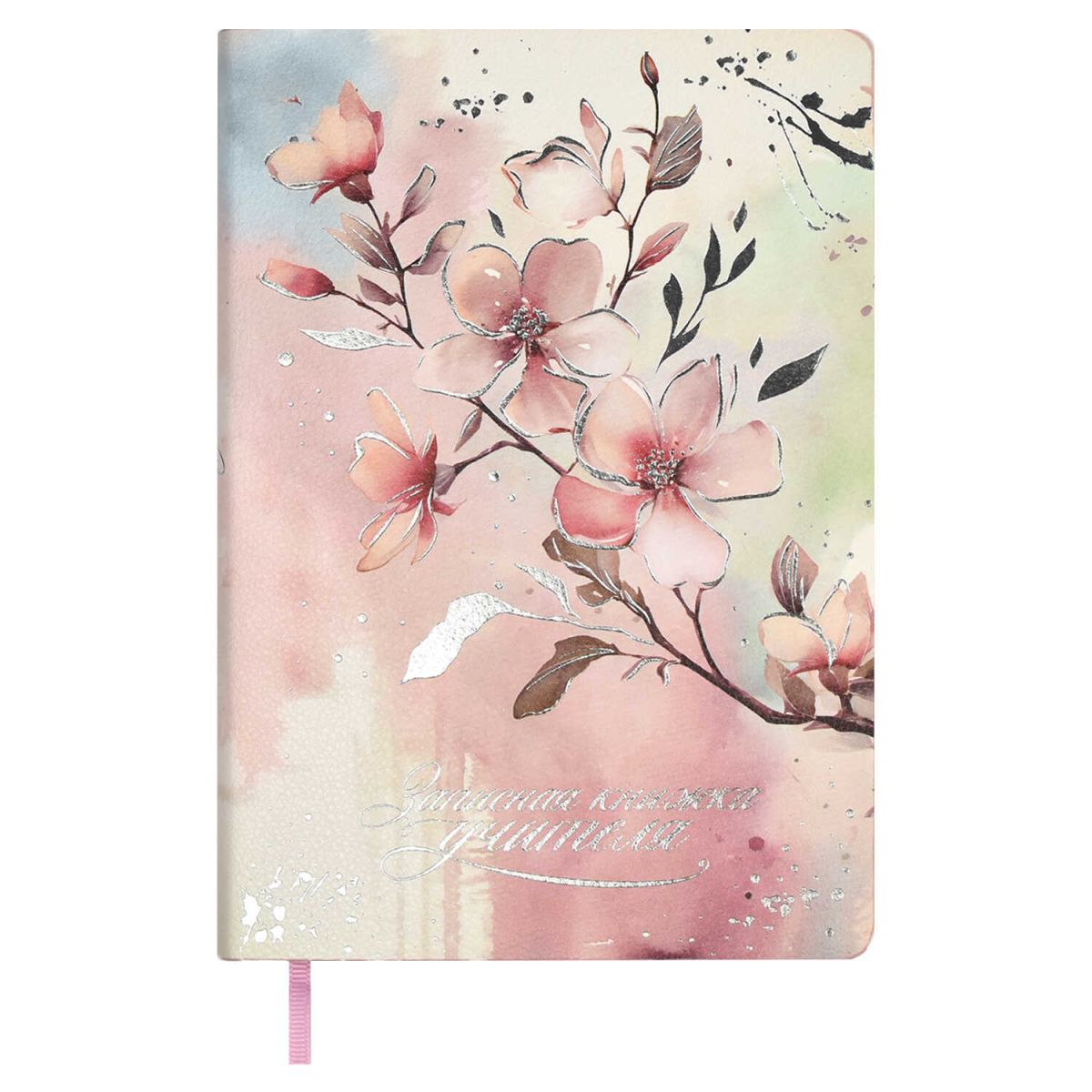Записная книга учителя, преподавателя, А5, 120 л., арт. 66479/ 15 САКУРА (кожзам: 146x211 мм, мягкий переплёт, материал обложки: искусственная кожа "Наппа", способ крепления блока: ниткошвейный, декор: полноцветная печать, тиснение фольгой, вн. блок: 120 л., белый офсет 70 г/м², печать в две краски (линия), справочный материал: нет, отделка среза: фольгирование, закладка/-и: одно ляссе, форзац: печать пантоном, инд. упаковка: промостикер + ПЭТ-пакет)